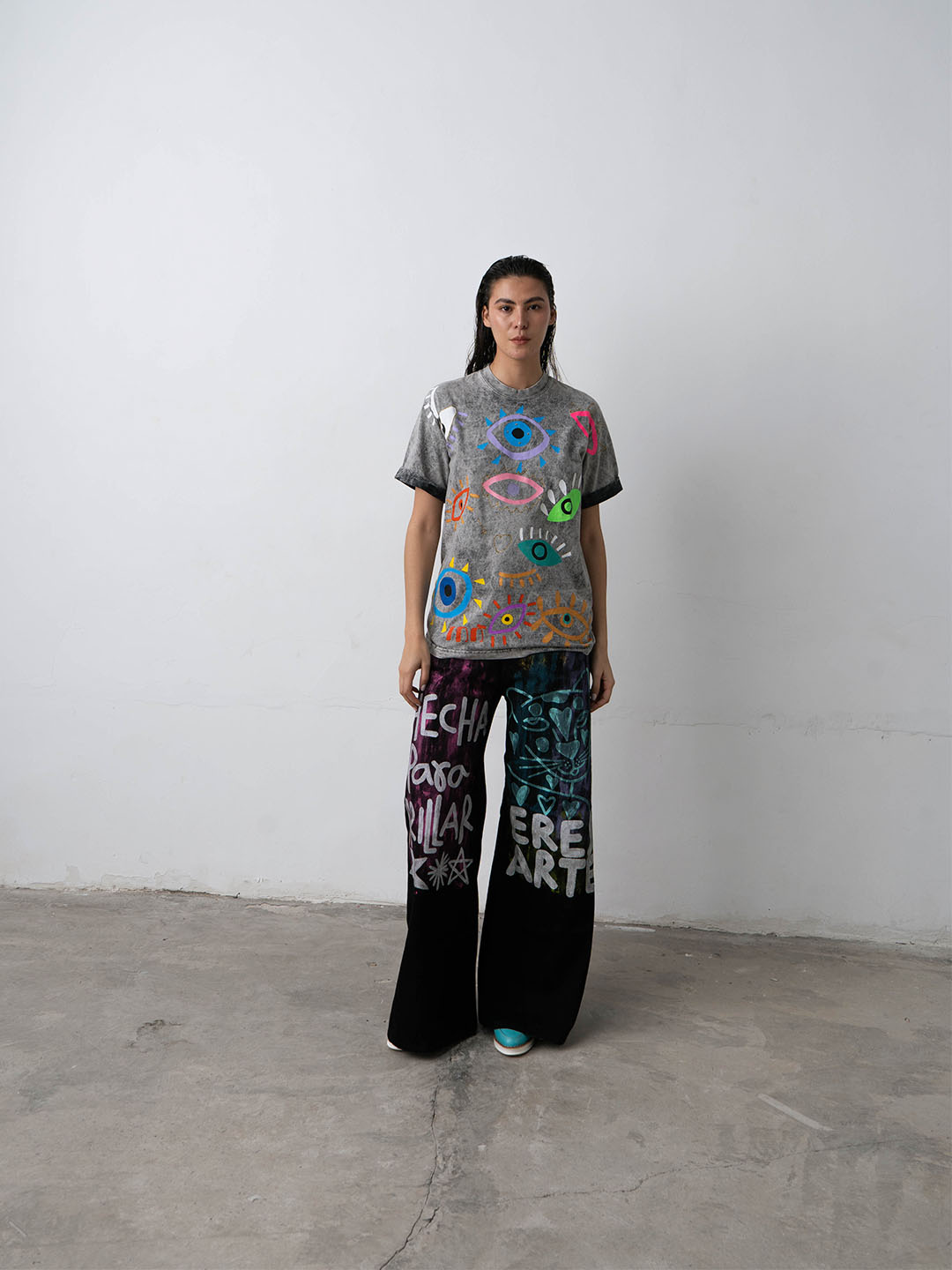 Hecha en algodón peruano suave y fresco, su fit oversize te brinda libertad y comodidad todo el día. Cada camiseta está pintada a mano con pinturas especiales que garantizan que el diseño no se desprenda. Una prenda esencial y divertida para tu closet, disponible en talla única que se adapta a ti. ¡Atrévete a lucir diferente y fresco!