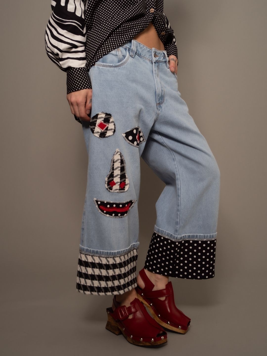 Jean Faces Intervenido: diseño audaz con rostros estampados que transforman tu look. Corte capri perfecto que abraza tu figura, ideal para lucir descaderado con una talla arriba. Prendas que cuentan historias y reflejan tu personalidad única. Atrévete a ser diferente.