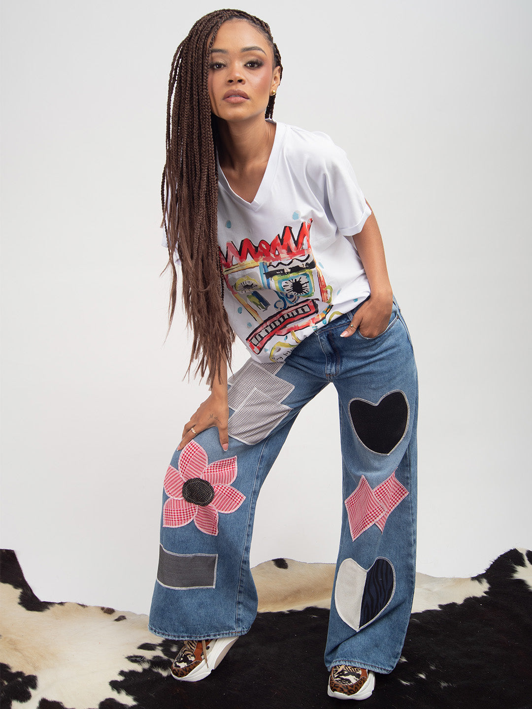 ¡Lleva tu estilo al siguiente nivel con nuestros jeans parchados de MN Tienda! Nuestras prendas icónicas tienen la mejor horma para un ajuste perfecto y están intervenidas con parches únicos. ¡Agrega un toque de originalidad y comodidad a tu guardarropa con estos jeans de bota recta!