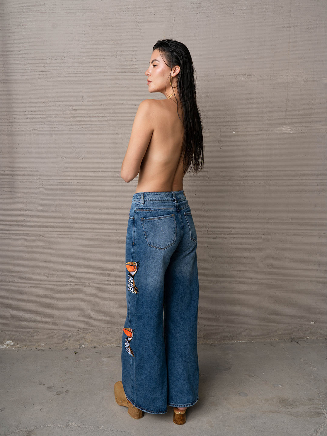 Descubre el Jean Tucan Marea Viva, con una horma perfecta que realza tu figura y un bordado divertido de tucán a los costados que le da un toque único y...